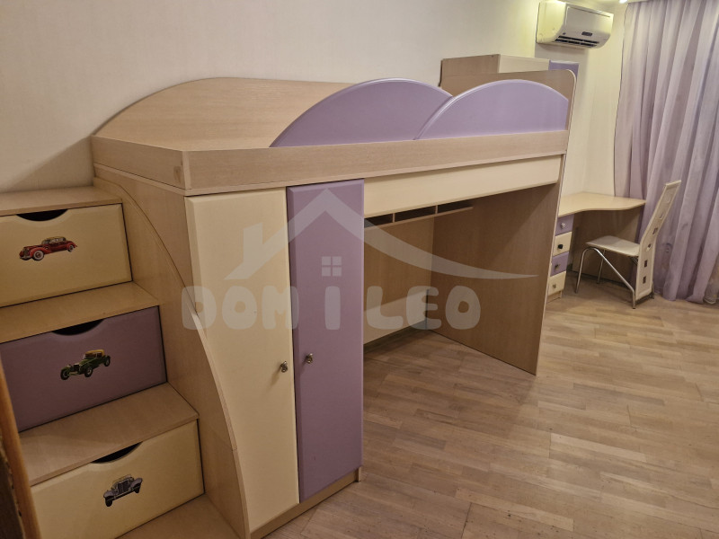 Layout: separate rooms: Bedroom with a sofa bed and a double bed (orthopedic mattress, built into the wardrobe). Children's room with two sleeping places (single bed + bunk bed with orthopedic mattresses).