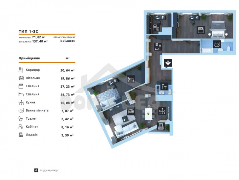 3х к.квартиру-137м²