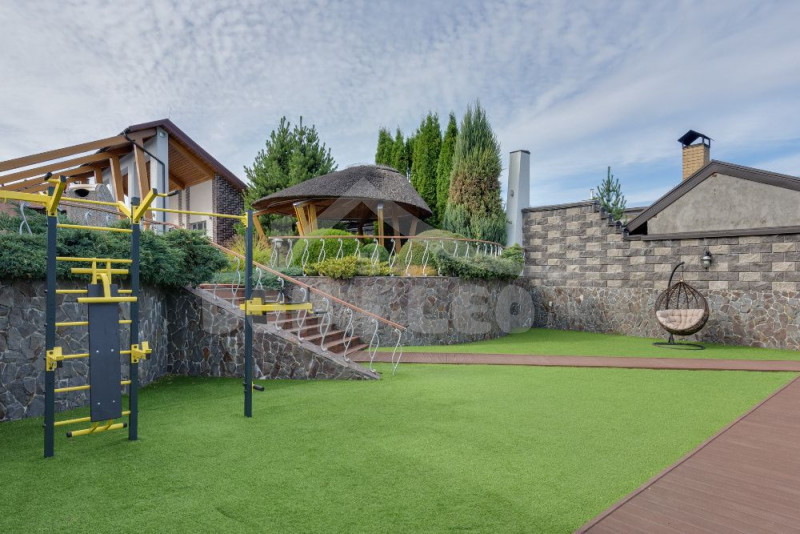 Продам двоповерховий будинок площею 230 м, розмір гостьового будинку 100 м. Ділянка 10 соток. Парковка на дві машини. Дизайнерський ремонт, всі меблі і техніка включена. Технологія розумний будинок, підігрів підлоги, басейн, сауна, баня.Охраняемая територія.